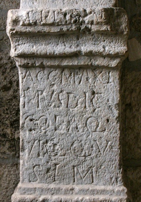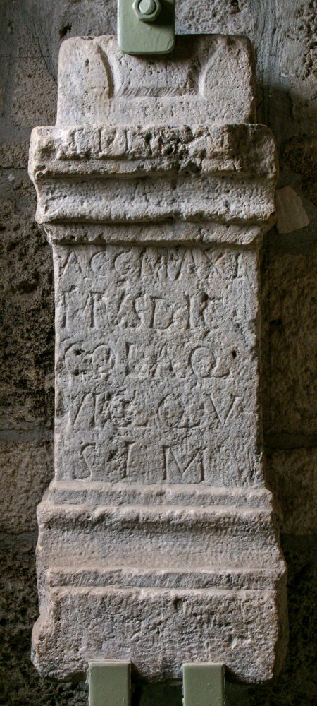 - Sil(vano) Silv(estri) // Acc(ius) Maxi/mus dec(urio)/ col(oniae) Aq/ui(ncensium) q(uin)q(uennalis) v(otum) / s(olvit) l(ibens) m(erito)