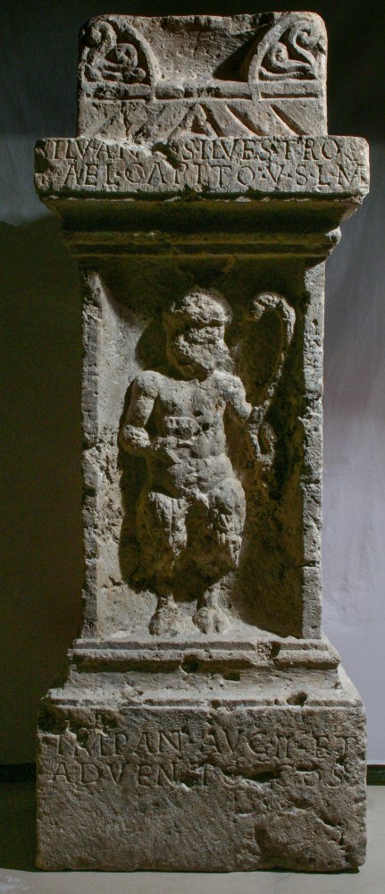 - Silvano Silvestro (!) / P(ublius) Ael(ius) Capito v(otum) s(olvit) l(ibens) m(erito) // Imp(eratore) Ant(onino) Aug(usto) II et / Advento co(n)s(ulibus)