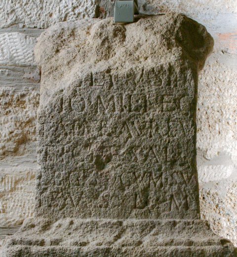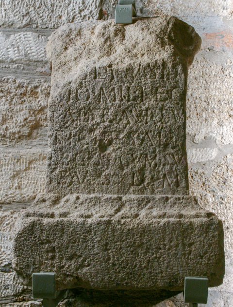 - ---] Cl(audius) Pusi{i}n/nio mil(es) leg(ionis) / I Ad(utricis) et Aur(elius) Eu/tuche(s) sal(ariarius) / leg(ionis) s(upra) s(criptae) cum su/is v(otum) s(olverunt) l(ibens) m(erito)
