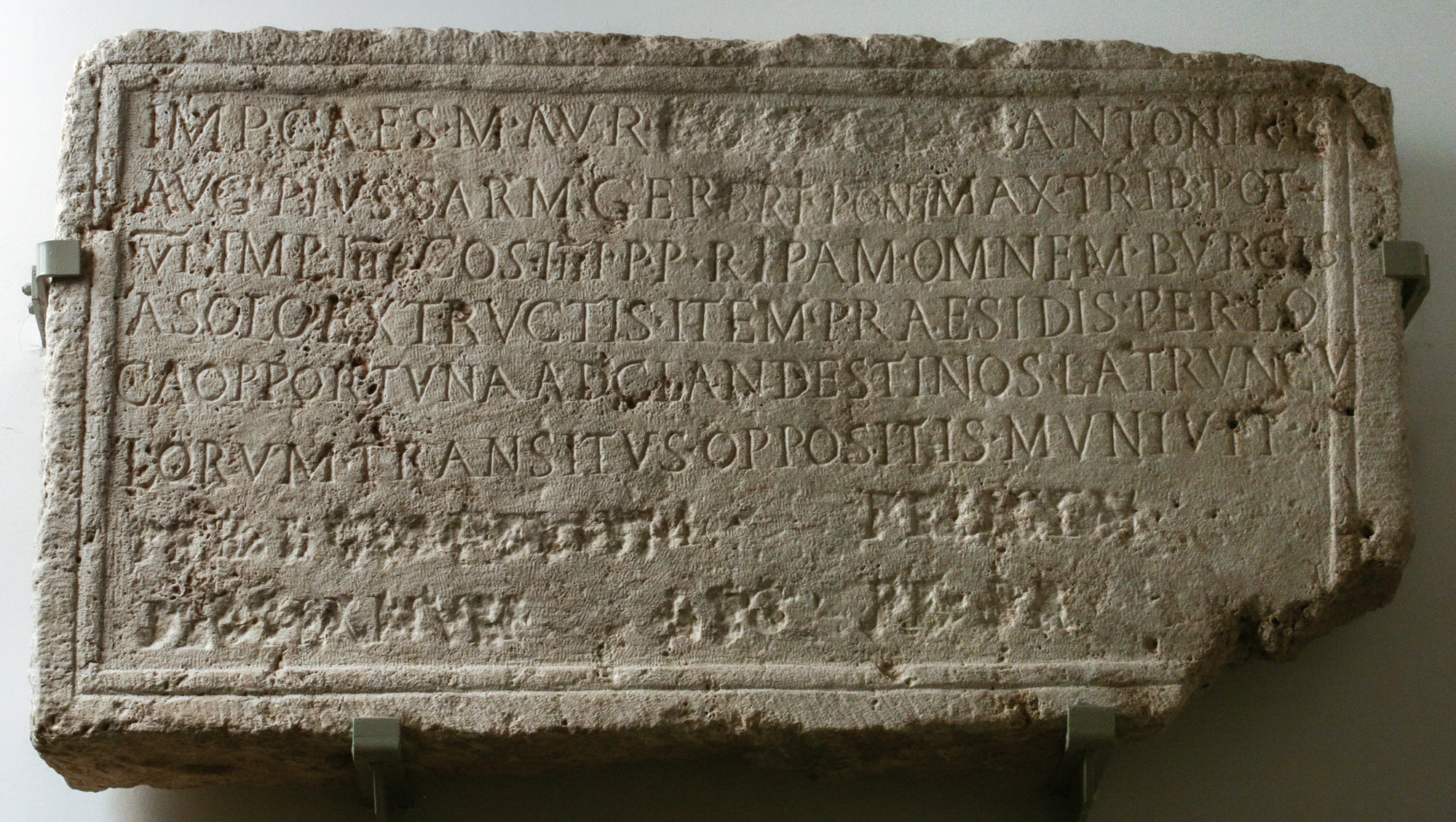 9767 Bauinschrift für die Errichtung von Festungen am Donauufer