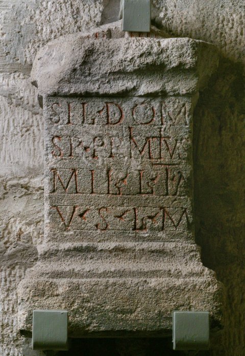 - Sil(vano) dom(estico) / Sp() Primitius / mil(es) l(egionis) I A(diutricis) / v(otum) s(olvit) l(ibens) m(erito)