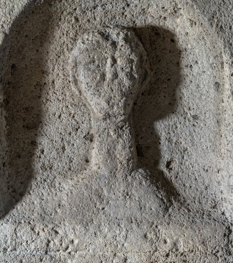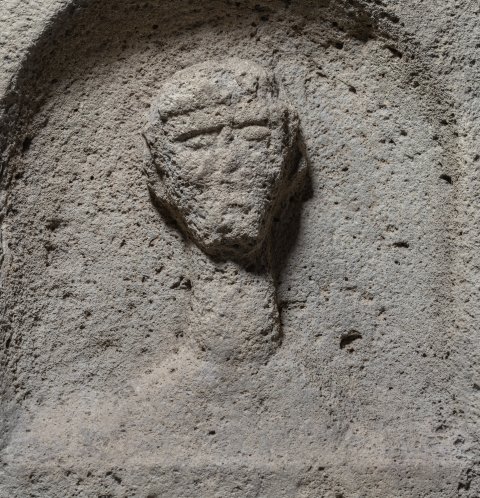 Hauptbild: in Bogennische bartlose Büste eines Mannes.