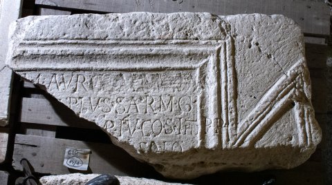 - [Imp(erator) Caes(ar)] M(arcus) Aur(elius) [[Commodus ]] / [Antoninus A]ug(ustus) Pius Sarm(aticus) G(ermanicus) / [pont(ifex) max(imus) tr]ib(unicia) pot(estate) VI imp(erator) IIII co(n)s(ul) IIII p(ater) p(atriae) / [ripam omn]em burgis a solo / [extructis item praesidis per lo/ca oppor]tuna ad clandest/[inos latruncul]orum transitus oppo/[sitis muni]vit per L(ucium) Corneli/[um Felicem] Plotianum leg(atum) pr(o) pr(aetore)