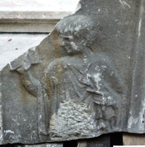 - Diener (Librarius - Scriba): in Rechteckfeld Mann in Tunica, in der Rechten Diptychon, in der Linken Rolle (volumen).