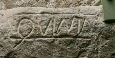 - Ritzinschrift zwischen Ritzlinien