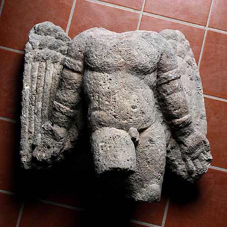 - Mythische Figur (Ikarus): nackter Knabe, an den gesenkten Armen mit Riemen befestigte Flügel. Akroter eines Grabmals ?