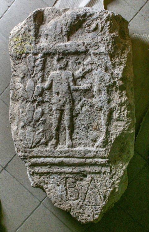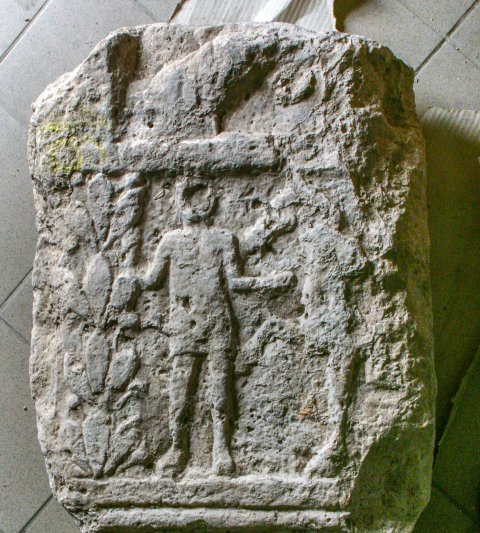 Im Hauptbild abgeschlagene Reste eines Reliefs (Brustbild).