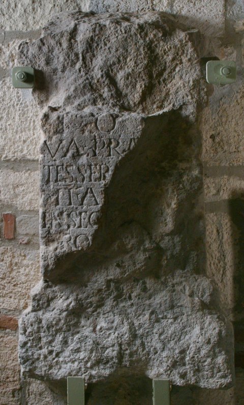 - I(ovi) O(ptimo) [M(aximo)] / Val(erius) Pra[esens] / tessera[r(ius) leg(ionis)] / II Ad[i(utricis) P(iae) F(idelis)] / in sec[---] / pro [---] / I[---]