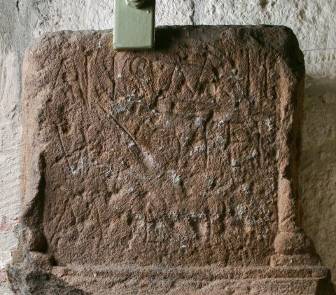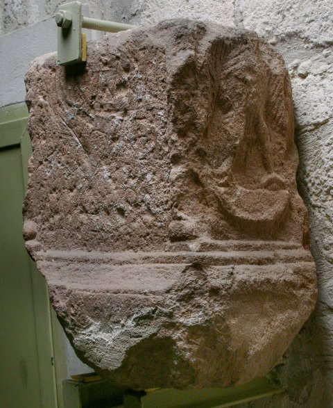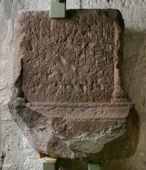 - oben abgebr., stark bestoßen, Inschrift abgerieben