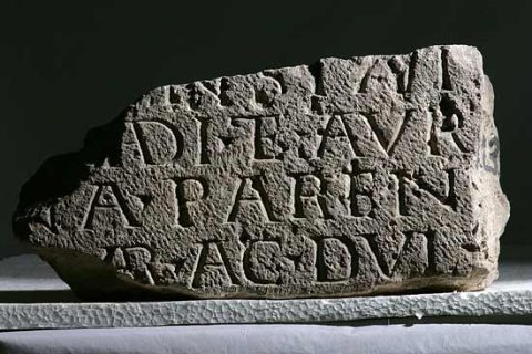 - Co]nstant[inus(?)] / [mil(es?) leg(ionis) II] Adi(iutricis) et Aur[elia] / [---]na paren[tes] / [--- filio r]ar(issimo) ac dul(cissimo) [---