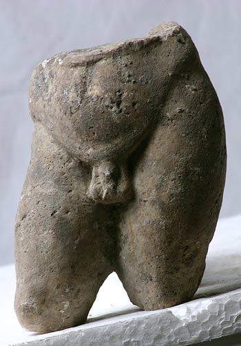 - Mythische Figur (Genius ?, Eros ?) :Rest einer nackten stehenden Knabenfigur.