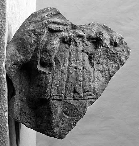 - Familie : erhalten ist der Körper eines Kleinkindes in einem Kittel mit Ärmeln, auf der Brust Omega-förmiger Anhänger (Lunula ?), die linke Hand hält einen Vogel. Auf der rechten Schulter rechte Hand eines Erwachsenen.