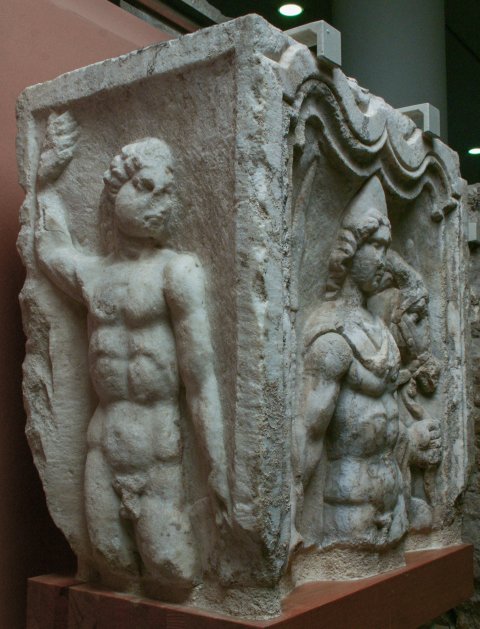 9995 Reliefblock mit Dioskur und Heros mit Waffen