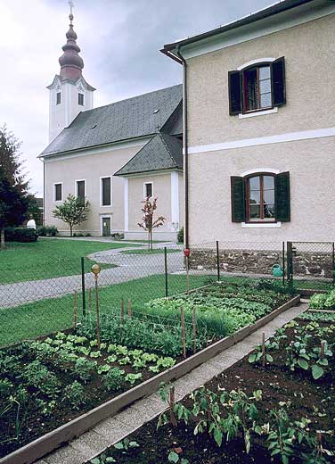 Die Dorfkirche ist ein barocker Neubau. Ob die an der Ecke der Sakristei eingemauerten Römersteine schon aus der Vorgängerkirche stammen oder erst im 18.Jh. verbaut worden sind, ist unbekannt, sicher kommen sie aus der näheren Umgebung. Die weststeirischen Nebentäler der Mur waren zwar schon lange vor der Römerzeit besiedelt, deren steinerne Relikte sind aber besser sichtbar als die zahlreich in den Wäldern versteckten Hügelgräber der Hallstattzeit.