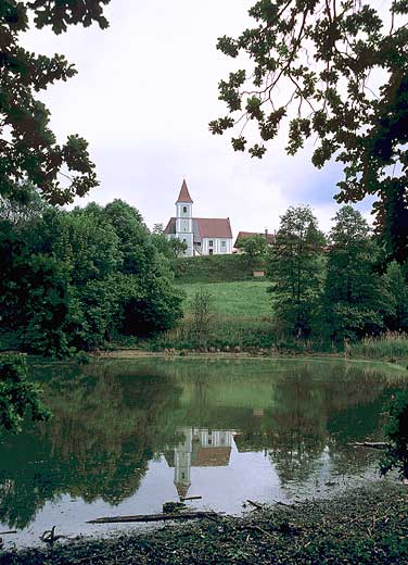 Die kleine Kirche - ein barockisierter gotischer Bau - liegt auf einem steil nach Norden abfallenden Hügel, von dem man in die Region einer weststeirischen Weinspezialität, des Schilchers blickt. Bei Bauarbeiten wurden 1998 in den Fundamentmauern der Kirche römische Spolien festgestellt. Ein Grabrelief mit Inschrift ist sichtbar am barocken Turm angebracht.