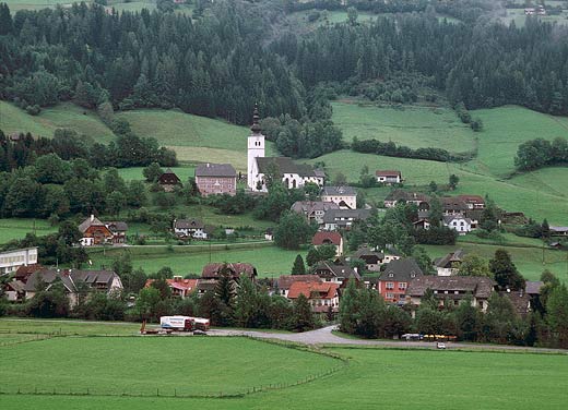 An einer alten Verbindungsstraße vom Murtal ins Lungau liegt der Ort am steil aufsteigenden Hang, überragt von der spätgotischen Kirche. An deren Südseite hat sich ein seltenes Beispiel eines von reformatorischen Ideen inspirierten Freskenzyklus erhalten (um 1570). Neben der Kirche steht der stattliche Pfarrhof aus dem 17. Jh., an dem eine Gruppe von römischen Reliefs und eine Inschrift zu einem Tableau komponiert sind.