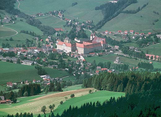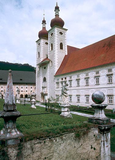 Abseits der Durchzugsstraßen im Murtal und über den Neumarkter Sattel liegt das im 11.Jh. gegründete Kloster in einem weiten Hochtal. St. Lambrecht besaß schon früh besondere Bedeutung, weil zu ihm die wichtigste Wallfahrtskirche Österreichs, Mariazell, gehörte. Auch das Stift Altenburg im Kamptal wurde von St. Lambrecht aus gegründet. Im Stift sind die reichen Sammlungen ausgestellt - Kunst, Volkskunde und Ornithologie spiegeln Vermögen des Stiftes und Interessen einzelner Ordensbrüder. Die römischen Steinskulpturen, die beim Schloss Lind (St. Marein bei Neumarkt) ausgeackert wurden, sind heute allerdings ins Depot gewandert. Die Klosteranlage bildet als Ganzes ein harmonisches Miteinander von barocken Stiftgebäuden, gotischer Kirche und romanischem Karner, gerahmt von Getreidekasten und Wirtschaftbauten. Die Verwendung der letzteren als Außenstelle des KZ Mauthausen wurde erst jüngst von Schülern aus Murau erforscht und im Internet veröffentlicht. Auf einer erhöhten Terrasse gegenüber der Stiftsfassade stehen das alte Spital und die zugehörige Kirche, dahinter im ansteigenden Gelände sind noch die Reste einer verfallenden Burg zu erkennen