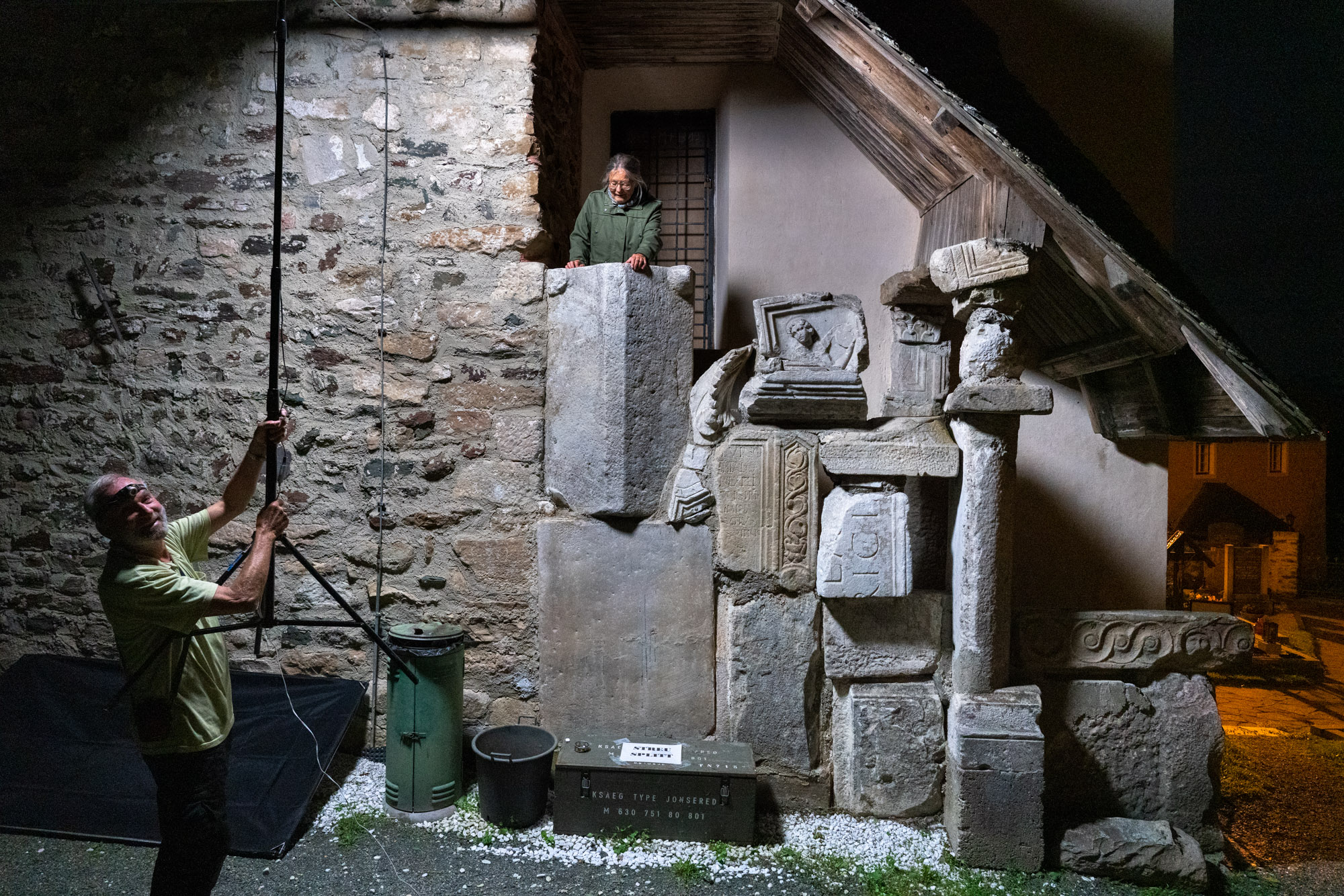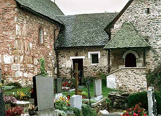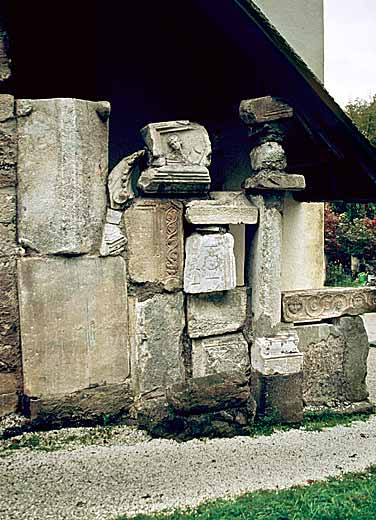 Die zahlreichen Römersteine finden sich allerdings vor allem in den Zubauten aus dem 14. - 15. Jh. Besonders bemerkenswert ist die Menge von aufeinander gestapelten Relief- und Inschriftbruchstücken beim Treppenaufgang an der Nordseite der Kirche.
