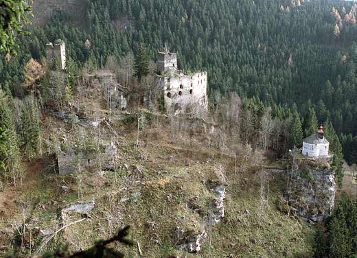 Nordwestlich von St. Veit an der Glan liegen versteckt auf einem waldigen Hang die Ruinen der Kraiger Schlösser. Sie sind nur zu Fuß erreichbar, die Wanderung vom romantischen Schloss Frauenstein führt entlang eines teilweise zu Teichen aufgestauten Baches zunächst zum Abstecher zur Ruine Oberkraig, dann weiter im Tal vorbei an den Resten eines Aquäduktes aus dem 15.-16.Jh., das einst die Schlösser verbunden hat, zur Ruine Niederkraig.