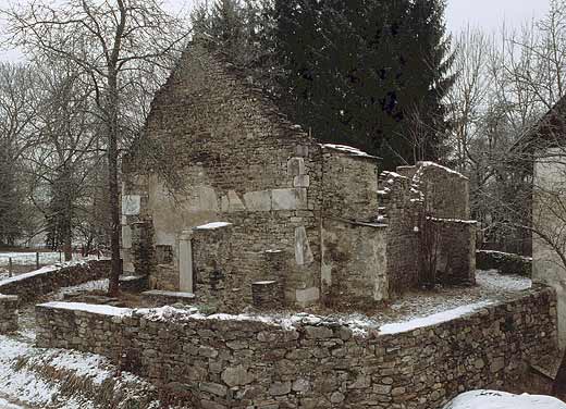 Ein schwer zu findender Ort, der an eine Imagination von Caspar David Friedrich erinnert. Die Reste der kleinen romanischen Kirche verstecken sich oberhalb von Waiern hinter einem Gehölz am Wanderweg zum Flatschacher See. Die verfallenden Mauern aus grauen Hausteinen sind von zahlreichen großen Quadern aus hellem Marmor durchsetzt. Das Portal wird von zwei Marmorpfeilern gerahmt und auch im aufgemauerten Altar stecken römische Spolien. Einst stand hier wohl ein repräsentativer römischer Grabbau, dessen Ruine zum Bau der Kirche abgetragen wurde, die nun selbst Ruine ist.