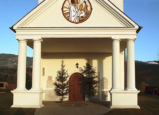 Südlich von Wolfsberg liegt etwas erhöht über dem Dorf am Hang der Koralpe die Kirche von St. Johann mit einem wuchtigen romanischen Westturm, dem an der Eingangsfront eine klassizistische Säulenhalle mit Giebeldach vorgebaut ist. Neben dem Kirchenportal ist die monumentale Grabinschrift eines römischen Beamten und seiner Frau, errichtet von beider Töchtern, zu lesen.