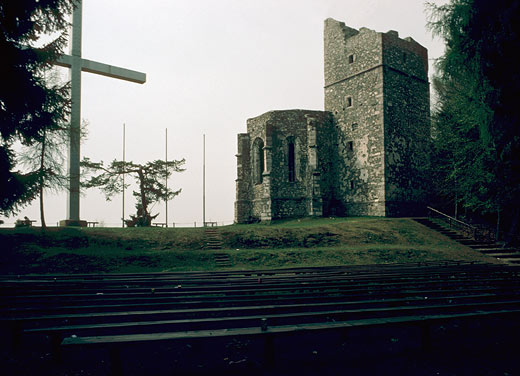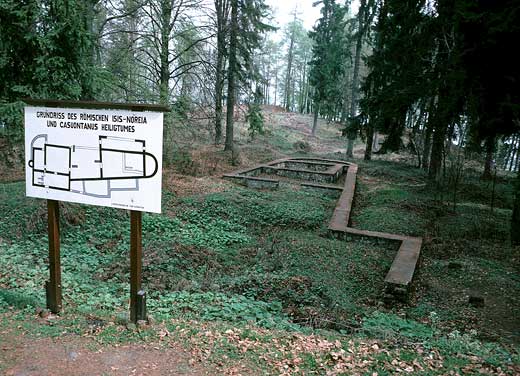 Kärnten hat vier heilige Berge, und heiligste davon ist sicher der Ulrichsberg. Der Magdalensberg, auf dem am 2. Freitag nach Ostern der Wallfahrtsmarathon über die vier Berge startet, ist vielleicht berühmter, aber mehr wegen der römischen Stadt auf seinem Gipfel. Und die beiden letzten der vier, Veitsberg und Laurenziberg, sind nur regional bekannt. Der Ulrichsberg jedoch wird schon 983 mons carantanus genannt, und wenn auch die verfallende Ulrichskirche der Blitz getroffen hat und dem hypothetischen Kultbecken für die heidnische Göttin Isis-Noreia von der Wissenschaft das Wasser abgelassen wurde, so sorgt die Landeskriegergedenkstätte bei der Kirchenruine für genügend heiligen Schrecken. Die ausgegrabenen Bauten stammen von einer spätantiken Höhensiedlung, für die Steinmaterial aus dem Tal heraufgeschafft worden ist. So lassen sich auch die römischen Spolien in der Kirchenruine erklären. Das eindrucksvolle Becken diente der Wasserversorgung auf dem Berg.