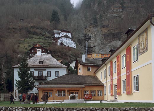 Hallstatt existiert dreifach: als wissenschaftlicher Name für eine urgeschichtliche Kultur, als Postkartenansicht mit Spiegelbild im See vor Dachsteinkulisse (Weltkulturerbe !) und als realer Ort, den man bis 1875 nur auf Saumpfaden oder über den See erreichen konnte. Auch die kurze Straße, die durch den Ort zur Schiffsanlegestelle führt ist wenig mehr als 100 Jahre alt, vorher verkehrte man von Haus zu Haus entweder von unten per Boot oder von oben von Dachboden zu Dachboden. Die Hallstattkultur fand einige hundert Meter oberhalb von Hallstatt statt, wo bis heute das Salzbergwerk in Betrieb ist. Beim 1284 zum Schutz der Salzwerke errichteten Rudolfsturm wurde im 19. Jh. ein riesiges Gräberfeld aus dem 1. Jahrtausend v.Chr. ausgegraben, dessen reiche Funde heute zum Teil im Museum in Hallstatt zu sehen sind. Die prähistorischen Bergwerksstollen werden weiterhin untersucht und liefern rare Funde, die das Salz konserviert hat. Die Römer scheinen in Hallstatt kein Salz abgebaut zu haben, siedelten aber in der Lahn, dem Tal südlich des Ortes.