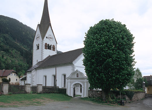 Heute kann man vom Westende des Ossiacher Sees durch eine Allee moderner Skulpturen nach Treffen spazieren, das schon im Jahr 860 genannt wird und 1007 im Besitz Kaisers Heinrich II. (Bauherr des Bamberger Doms) war. Eine Zäsur in der Ortsgeschichte bildet das Erdbeben von 1690, das auch die romanische Kirche stark beschädigte. Bei Restaurierungsarbeitten an und in der Kirche wurden immer wieder Reste römischer Reliefs, die im Mittelalter als Bausteine verwendet worden waren, aufgedeckt. An der Südseite sind etliche Bruchstücke sichtbar gemacht, künstlerisch ausgestochen werden sie allerdings vom spätgotischen Ölbergfresko an der Wand der Südkapelle. Eindrucksvoll ist vor allem das in der Vorhalle aufgestellte Stück der Decke eines monumentalen Grabbaus.