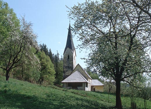 Das Dorf Wutschein, südlich des Magdalensberges, erreicht man nur über ländliche Nebensträßchen. Dort sitzt auf einer Wiese eine verwitterte Dame aus Marmor, deren sicher reich verzierter Grabbau durch einen kleinen Holzbaldachin ersetzt worden ist. An der oberhalb des Ortes hübsch im Grünen gelegenen Kirche findet man weitere Reste römischer Grabbauten.