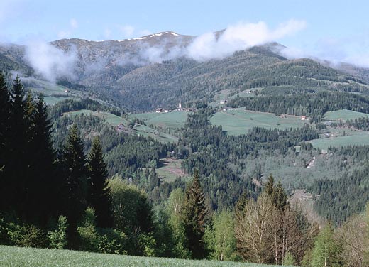 Nördlich von Treffen zweigt eine landschaftlich reizvolle Nebenstraße nach Feldkirchen ab, von der man im Dorf Arriach den Fahrweg hinauf nach Oberwöllan findet. Die Kirche der Streusiedlung steht auf einer nach Süden offenen weiträumigen Terrasse des Nockgebirges in über 1100 Metern Höhe.Der mächtige Turm mit Schießscharten erinnert an die frühere Funktion als ummauerte Wehrkirche, in die man sich vor Ungarn und Türken flüchten konnte. Ein friedlicheres Leben hatte wohl das Ehepaar zur Römerzeit, dessen Grabstein in der Mensa des barocken Seitenaltars eingelassen ist.