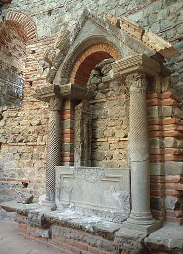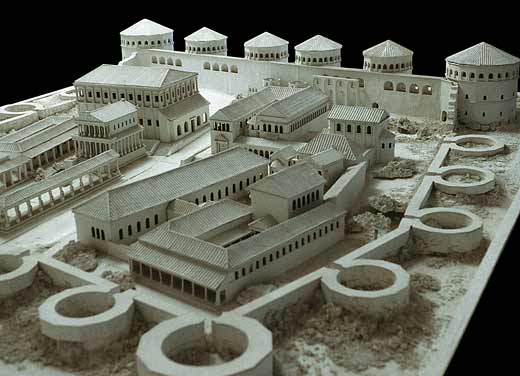 Der Diocletianspalast an der dalmatinischen Küste, der ein Stadtviertel von Split bildet, ist ein vielbesuchtes Reiseziel. Der Palast, den sich sein Mitkaiser und Nachfolger Galerius im östlichen Serbien bauen ließ, ist noch ein touristischer Geheimtip. Das hoch erhaltene, dicht mit Türmen besetzte Mauergeviert liegt versteckt in einem idyllischen Tal westlich der Stadt Zajecar. In einem Turm des Westtores ist ein Lapidarium mit Architekturteilen eingerichtet. Sie sind eindrucksvolle Zeugen einer Spätzeit, in der das reiche Formenrepertoire der Vergangenheit zu einer bizarr überladenen Repräsentationsarchitektur verarbeitet wurde. Weitere Funde wie Mosaikböden, Reste von Marmor- und Porphyrstatuen sind im Museum in Zajecar zu bewundern. Dort ist auch die Inschrift ausgestellt, die den Namen der Palastanlage überliefert: Felix Romuliana, nach der Mutter des Bauherrn. Dieser war wegen seiner militärischen Qualitäten trotz einfachster Herkunft von Diocletian zum Caesar gemacht worden und hatte um 300 mit dem Bau seines Alterssitzes begonnen. Nach den unentwegten Kriegen gegen innere und äußere Feinde des Römischen Reiches hoffte Galerius vielleicht in der bukolischen Landschaft mit ihren Thermalquellen auf einen ruhigeren Lebensabend. Aber schon 311 starb er und wurde auf dem Hügel oberhalb seines Palastes bestattet. Heute sind die beiden imposanten Verbrennungshügel und die Reste der Grabbauten für Galerius und seine Mutter auf dem Hügelkamm freigelegt und von weitem zu sehen. Von dort oben genießt man den Blick nach Westen auf Felix Romuliana und nach Osten auf die heutige Stadt Zajecar und kann sich den Feuerzauber des kaiserlichen Begräbnisses vorstellen.