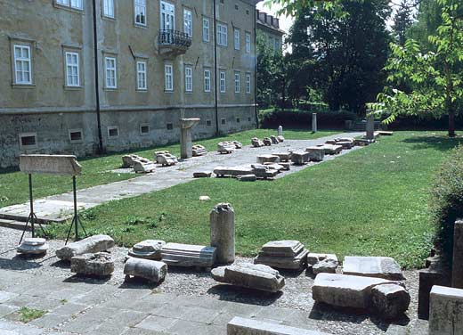 Vom Garten des archäologischen Museums hat man die wichtigsten Epochen der Geschichte Celjes im Blick: die beherrschend auf einem steilen Hügel gelegene Burg erinnert an die kurze Phase im 15. Jh., als die Grafen von Cilli in der europäischen Politik mitspielten, und im Vordergrund, nahe dem Ufer der Savinja, liegen Trümmer der römischen Stadt Celeia. Ihre steinernen Überreste sind nicht nur im Lapidarium in Gewölben aus dem 16. Jh. zu sehen, sondern auch beim Spaziergang in der hübschen Altstadt zu entdecken. Celeia lag zwischen dem Hügelzug im Süden und der damals weiter nördlich fließenden Savinja, die wegen ihrer Unberechenbarkeit bis ins 19. Jh. gefürchtet war. Am Flussübergang der Bernsteinstraße war hier eine keltische Handelssiedlung entstanden, die unter den Römern zu einer wichtigen Provinzstadt ausgebaut wurde. Erst im späten 3. Jh. wurde sie unter Verwendung von Architekturstücken, Grabsteinen und Statuen mit einem Mauerring geschützt. Das römische Celeia ging um 450 beim Durchzug der Hunnen unter, den alten keltischen Namen trägt die sich im Mittelalter in den römischen Mauern entwickelnde Stadt bis heute.