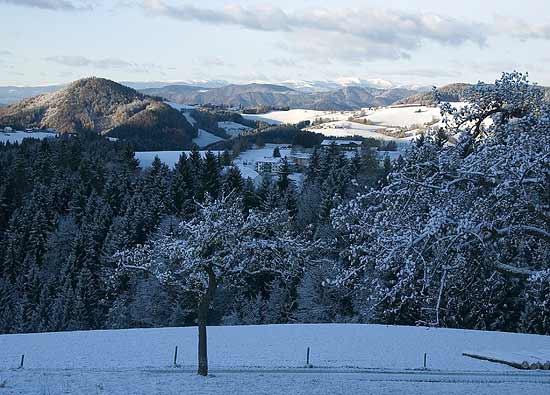 Semriach liegt auf der Rückseite des Grazer Hausberges Schöckel auf einem weiten Hochplateau. Um 1500 muss hier ein Bauboom ausgebrochen sein, denn der kleine Ort leistete sich den Abriss und kompletten Neubau der Kirche auf dem Hügel am Ende des straßenartigen Marktplatzes. Die stattliche spätgotische Hallenkirche wurde auch unter Verwendung von römischen Grabsteinen errichtet, von denen Teile erst jüngst zum Vorschein kamen. Besser erhaltene Stücke sind, wohl im frühen 19.Jh., an der Südseite der Kirche eingemauert worden. Sie bezeugen die dichte Besiedlung der fruchtbaren Hochfläche in der Römerzeit - und die berufliche Mobilität der damaligen Bewohner: Einer war als Veteran aus Enns (Lauriacum) zurückgekehrt, 2 andere haben als Prätorianer in Rom gedient.