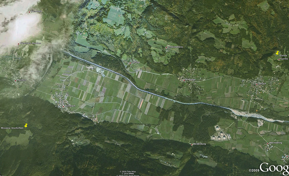 Oberhalb des Ortes Würmlach liegen auf dem Anstieg Richtung Plöckenpass die Würmlacher Wiesen, auch Missoria-Alm genannt. Heute hat sich, zumindest auf der Westseite, der Wald in das Almgebiet vorgeschoben, so dass die Fundstelle der venetischen Inschriften inzwischen von Bäumen bewachsen und daher nicht ganz leicht zu finden ist. Von dem alten Fernverkehrsweg, der hier seit vorgeschichtlicher Zeit über die Karnischen Alpen führte, ist nichts mehr zu erahnen. Ein Wegweiser am von der Südwestecke der Almwiesen westwärts führenden Forstweg zeigt nach rechts ins Gehölz. Auf flachen Felsbuckeln sind dort zahlreiche neuzeitliche Eingravierungen zu sehen, während die venetischen Namensinschriften herausgeschnitten und ins Kärntner Landesmuseum in Klagenfurt verbracht worden sind.