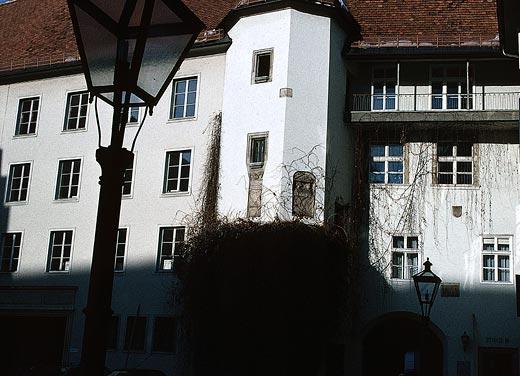 Von der spätmittelalterlichen Burg, die unter Kaiser Friedrich III. errichtet wurde und durch einen Bogengang mit dem heutigen Dom verbunden war, ist nur noch der sogen. Maximilianstrakt teilweise erhalten. Friedrichs Palast ist um 1850 abgerissen und 1950 durch ein Amtsgebäude ersetzt worden. Im Hof desselben verbirgt sich an der Rückwand in einem halbrund vorspringenden Turm die graziöse Doppelwendeltreppe, die Maximilian I. Ende des 15. Jhs. bauen ließ. Um den Kaiser bei einem Besuch 1506 zu erfreuen wurden einige römische Grabsteine in die Burg gebracht, von denen 2 Stelen heute noch an der Außenwand des Treppenturmes eingemauert sind. Der Überlieferung nach stammen sie aus dem Gebiet von Flavia Solva (Bezirk Leibnitz).