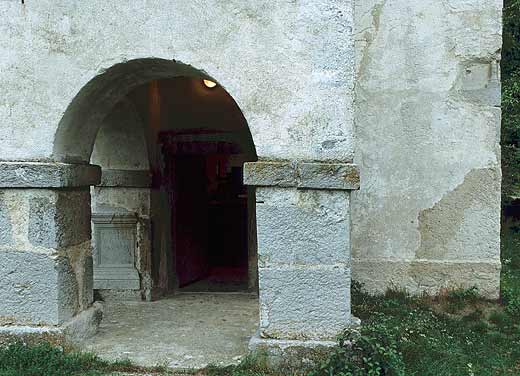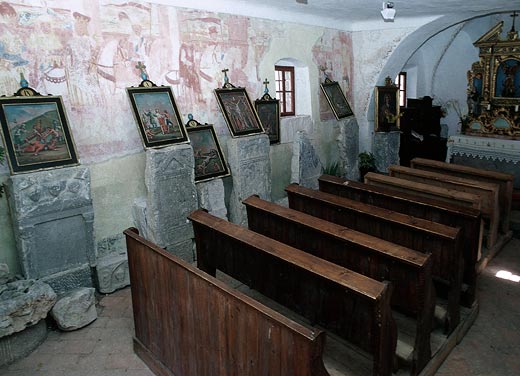An Kirchen eingemauerte Römersteine sind nichts Ungewöhnliches. Aber dass ein dörfliches Gotteshaus ganz selbstverständlich den römischen Grabsteinen aus der Umgebung Obdach bietet, ist eher selten. In der kleinen Michaelskirche in Iska Vas ist so ein reizendes Gesamtkunstwerk entstanden: unter dem Präsidium des Erzengels im goldglänzenden Hochaltar sind die bescheidenen Grabsteine der einstigen heidnischen Bewohner der Umgebung aufgereiht. Über ihnen schmücken Fresken mit Passionsszenen und dem Zug der Heiligen 3 Könige die Wände. Iska Vas liegt im Tal des gleichnamigen Flüsschens am Rand des Laibacher Moors. In der Nähe, beim Ort Ig, bestand seit prähistorischer Zeit eine Siedlung, die damals am Ufer eines Sees lag, wo auch Pfahlbauten aufgedeckt wurden. Von der einheimischen Bevölkerung der Römerzeit blieben nur die zahlreichen Grabsteine mit keltischen Namen, die jetzt in Iska Vas versammelt sind.